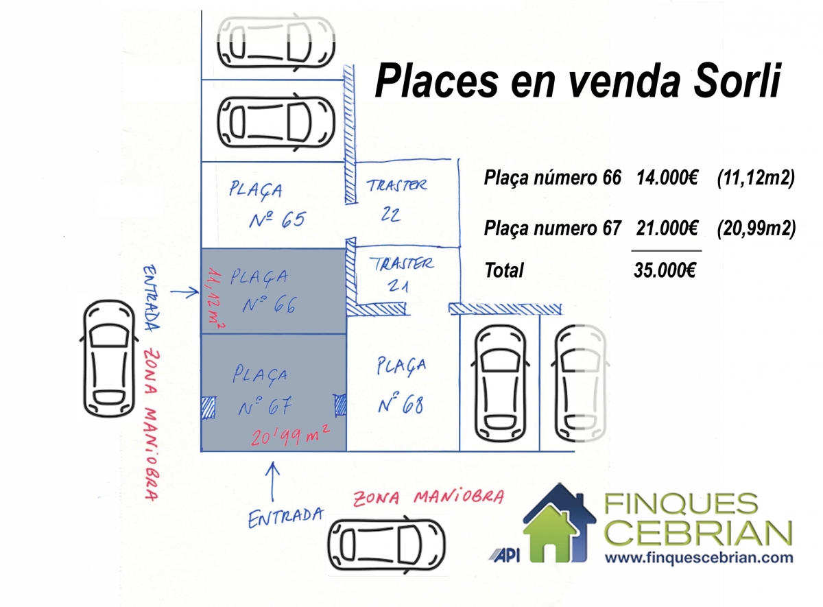 Se venden dos plazas de parquing en Alella: Amplia plaza de aparcamiento de 20,99 m² y plaza de aparcamiento de 11,12 m² en parking comunitario, situadas en la planta -1 de un edificio moderno. Acceso cómodo, fácil maniobra para cualquier tipo de vehículo. Precio: 21.000 €. Superficie: 20,99 m² Precio: 14.000€. Superficie: 11,12 m²